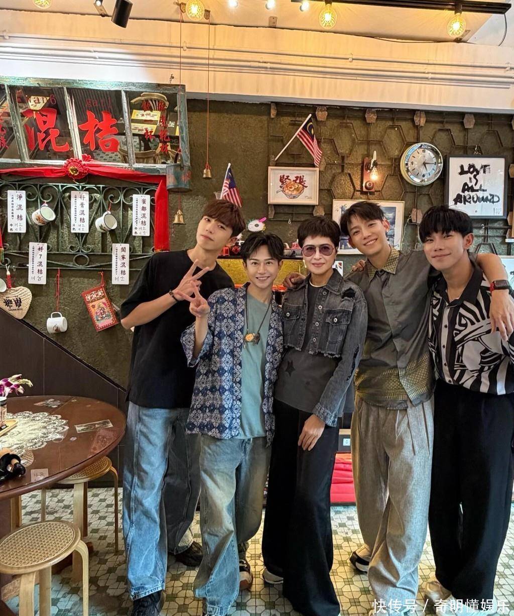 不过,生活中的邵美琪,并没有完全隐身,不久前,她现身深水埗一间人气面店,被店家分享到社交平台。那天的她,一身黑色oversize Tee配阔脚裤,再加短版牛仔外套和墨镜,随性又有星味。她毫无明星架子,与店内几位年轻老板膊贴膊合照,被“小鲜肉”包围也大方微笑。店家写下的那段话,比任何通稿都来得感叹——“由细睇港剧大,今日唔再系电视入面的角色,而系真真正正坐在旁边。”